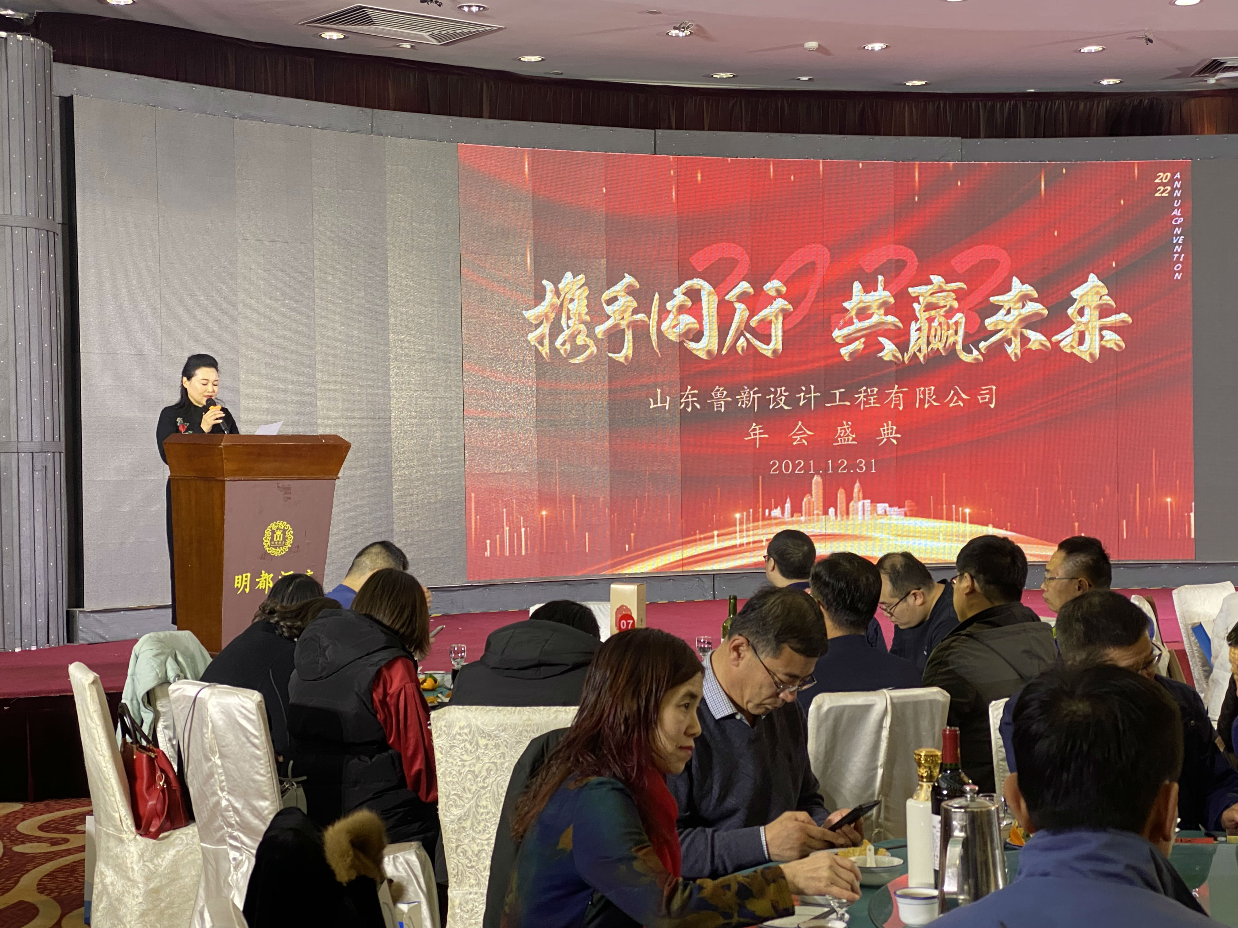 歲暮天寒,華光如夢。伴隨著冬日里溫暖的陽光,2022年元旦如約而至。2021年12月31日晚,在這辭舊迎新之際,山東魯新設計工程有限公司“迎新年、慶元旦”晚會在名都大酒店隆重舉行,參加晚會的除了公司員工外,還邀請了來自淄博“四新”產業發展聯盟的各位企業家、淄博煙臺商會的領導班子成員和顧問、四川大學淄博校友會的部分校友,及相關單位的領導和客戶代表們,大家齊聚一堂,共迎這歡樂的時刻。